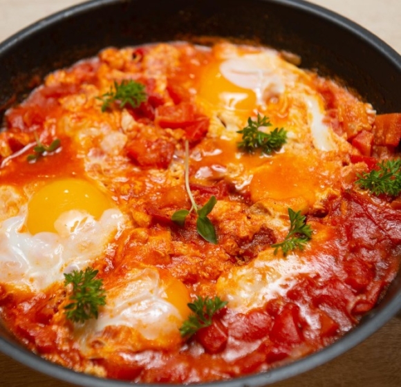 Завтрак (Испанская яичница с томатом и телятиной)